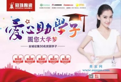 為助力寒門學子實現大學夢想,冠珠陶瓷將攜手西安大明宮實業集團、西安慈善協會、愛心客戶群體、陜西廣播電視舉辦的“愛心助學子,圓你大學夢”將在西安各大冠珠門店舉行。