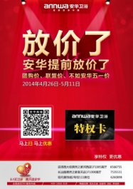 五一假期作為各商家年度促銷的重要節點,對于準備裝修的消費者來說,也是一個享受品牌優惠的好機會。在山西太原,安華衛浴就推出了“五一提前放價”大型活動,以四種優惠方式讓利消費者。