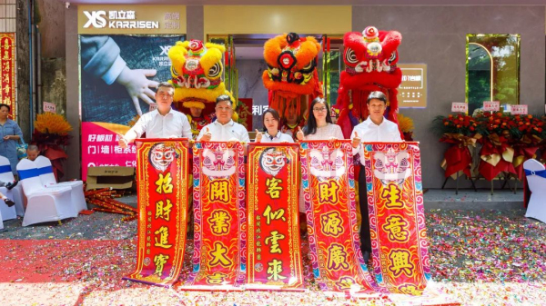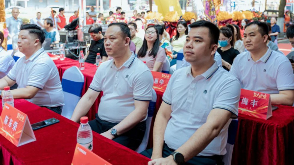 利家居瓷磚仁化店經銷商幸樂上臺致辭:“感謝各位嘉賓的到來,共同見證利家居瓷磚仁化店開業典禮的精彩時刻,在漫天禮花和陣陣鞭炮聲中,利家居瓷磚仁化旗艦店正式開業了。從今天開始,我們將以熱誠的態度為廣大消費者提供優質的產品和珍貴的服務,不辜負客戶朋友們的期待和支持,向著美好未來揚帆起航。堅信我們的明天一定會充滿希望、充滿光明、充滿輝煌!”