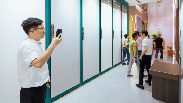 利家居仁化旗艦店,集結了利家居大品類產品,涵蓋RDR巖板系列、雙品石系列、現代磚系列等,同時也有雙零低吸系列、大理石瓷磚、木紋磚等多個系列。