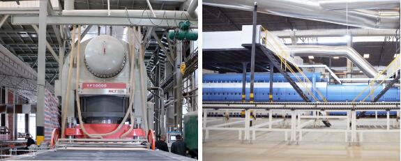 引進12通道高清噴墨打印機、BT數碼膠水干粒機、意大利SACMI10000噸壓機、意大利SACMI寬體輥道窯爐、自動上磚、拋光、檢測,紅外線分級設備、自動揀磚機、瓷磚打包機等設備,實現智能自動化生產。