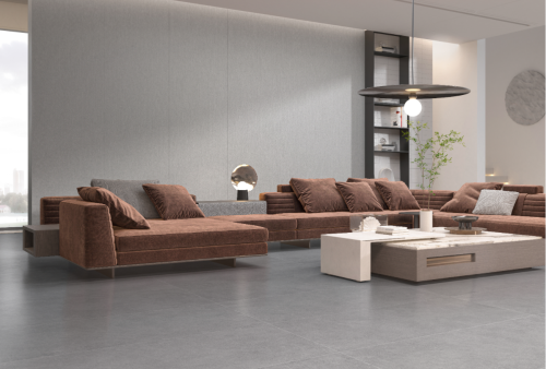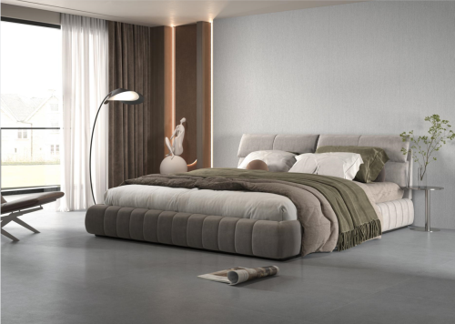 通過獨創的“抑光混合顆粒”技術的成熟應用,磚面真實呈現5°亞麻原生光澤,無論在自然光線還是射燈照射下,都不會產生刺眼的光線反射。柔和護瞳的光感,讓視覺與觸覺統一協調。