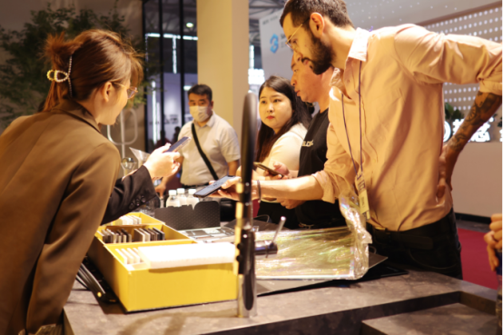 N1C26展位的歐若拉精工奢石以設計驅(qū)動創(chuàng)新,以產(chǎn)品對話空間,跨越多個場景的奢石高定空間,為用戶真實描繪出奢石的更多可能,在充分展示產(chǎn)品亮點的同時,也給參展商帶來一場集音樂、視覺美學與功能體驗于一體的難忘體驗,展館人流如織,人氣火爆,成為本屆展會必逛的熱門打卡點。