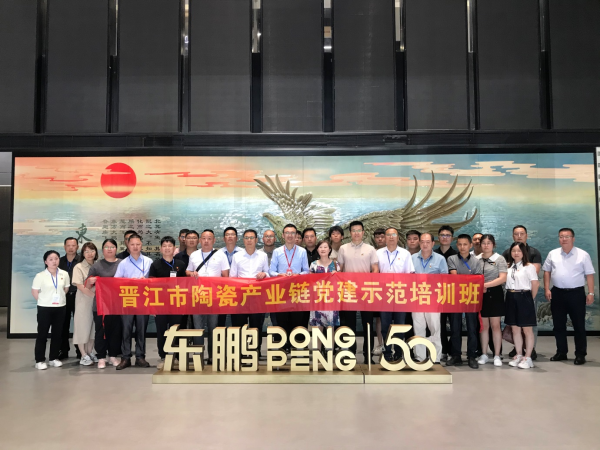 晉江市陶瓷產(chǎn)業(yè)鏈黨建示范培訓(xùn)班學(xué)員在東鵬總部合影留念
