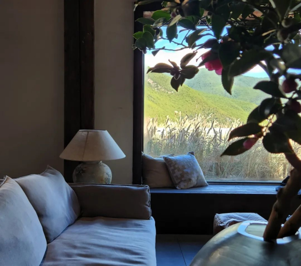 臥室與衛生間的的窗戶把遠處的山景變成了一副畫,掛進了房子之中,仿佛靜止的時光,在山的懷抱里溫習恬靜的生活。