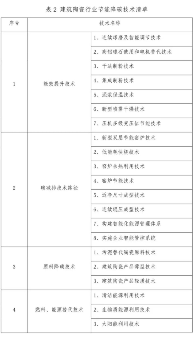 五、建筑陶瓷行業節能降碳技術清單