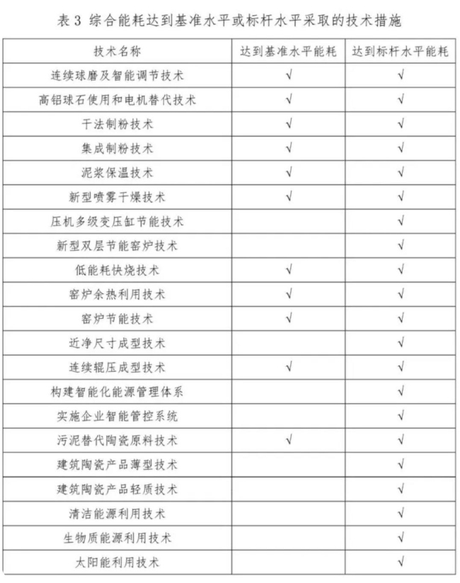本指南以國家發展改革委員會發布的《工業重點領域能效標桿水平和基準水平(2023版)》中定義的基準水平值和標桿水平值為碳減排技術應用目標,為不同能耗水平的建筑陶瓷企業提供對應的碳減排技術應用方案。指南中所列舉的碳減排技術方案僅為建議方案,建筑陶瓷企業在實際應用中可根據具體情況選擇使用。