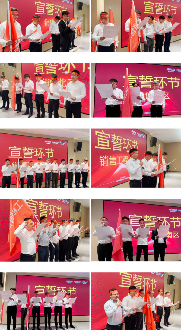 各大區經理帶領成員們上臺對2024年工作部署與銷售目標進行集體宣誓。這是一份壓力與動力并存的雙向承諾,也是一份“不破樓蘭終不還”的決心。