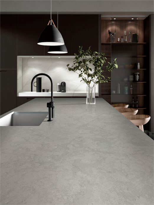 日式美學,講究返璞歸真,注重與自然和諧統一,將原始靜謐的氛圍帶入家居生活空間。廚房承載著家的溫暖與愛,擁有安靜且治愈的能力,法薩石以低飽和的色調和材質本身的肌理變化,打造張弛有度的空間節奏,在緊張的生活中收獲每一個松弛的當下。