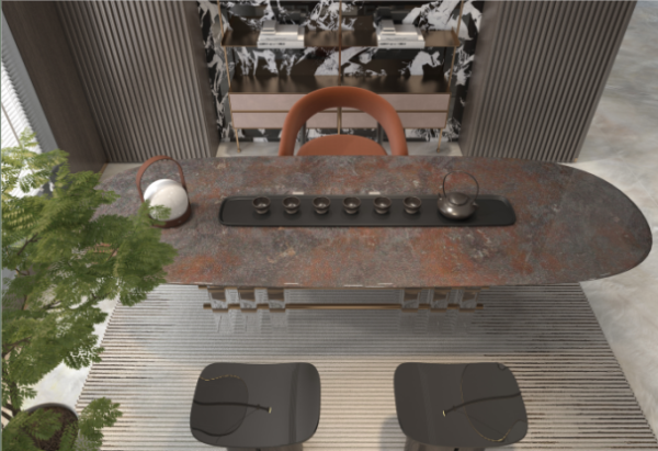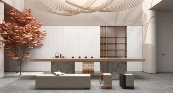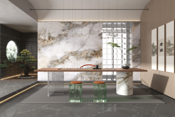 茶文化源遠流長,在四千多年的發展中逐漸形成以茶禮、茶道、茶藝為特色的中國獨有文化符號,從一片茶葉、一杯茶水變成一個空間、一種生活方式,現代中式茶室,在傳承中國古典文化的基礎上,又以簡潔大氣的設計語言,圍合之間,自此天地,歐若拉精工奢石以多樣造型的靈動組合,描繪日常不經意間的華麗,探索生活時的驚喜,讓奔波的靈魂詩意棲居。