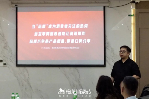 課程伊始,優居網策劃總監熊偉為營銷線人員進行了格萊斯瓷磚2024年“鴻運315·質享好物季”的全國聯動促銷活動的講解,幫助大家更好地把握到本次格萊斯瓷磚315全國聯動促銷活動的工作重心。