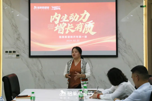 在開年這個重要時刻,面對市場瞬息萬變的情況,格萊斯瓷磚決定針對當前的市場形勢和品牌2024年營銷工作有針對性地開啟開年第一課內訓會。2月22日,以“內生動力,增長有質”為主題的格萊斯瓷磚開年第一課內訓會在品牌總部隆重召開,課程主要以營銷賦能和產品培訓兩大板塊展開,其目的主要是為了讓營銷人員的專業水平和業務能力得到有質提升,賦能2024年各項營銷目標的達成。