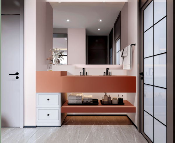 活潑明亮的柔和桃色+美拉德色系,美拉德風廚房以大地色、棕色為主色調,疊加點綴柔和桃色,美拉德浴室柜反向馴服柔和桃,柔和桃色的家具成為空間的亮點,在空間內深淺交錯,在沉穩和溫柔之間拿捏得恰到好處。浪漫且高級。