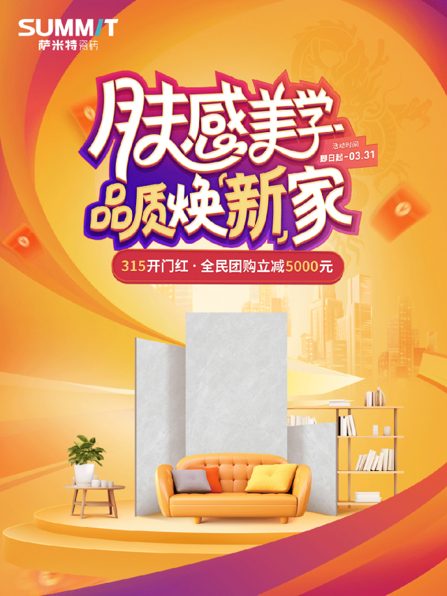 薩米特瓷磚品牌總部以及全國門店,線上線下齊參與,海陸空全方位營銷賦能,借勢春節火爆消費勢頭,聚力打響開門紅第一戰。