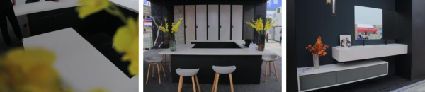 基于全球品類頂尖研發實力,品牌館展現了商業空間設計的前沿趨勢。時尚活力的衛浴區、象征自然質感的前臺區、形象產品展示區主要展出全新皮紋產品,0硅更環保健康,突破技術壁壘并創新研發出可適用于戶外的產品,大氣簡約的島臺區,追求極致的生活品位和質量,彰顯低調奢華。