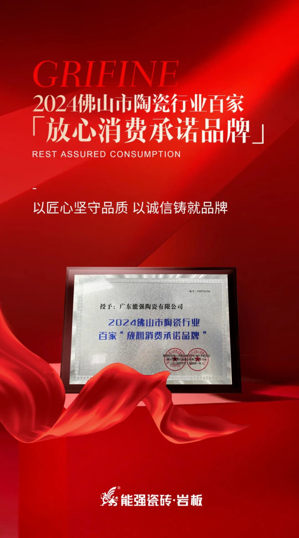 在本次活動中,能強瓷磚憑借優(yōu)秀的產品品質和專業(yè)的品牌服務被授予2024佛山市陶瓷行業(yè)百家“放心消費承諾品牌”稱號。