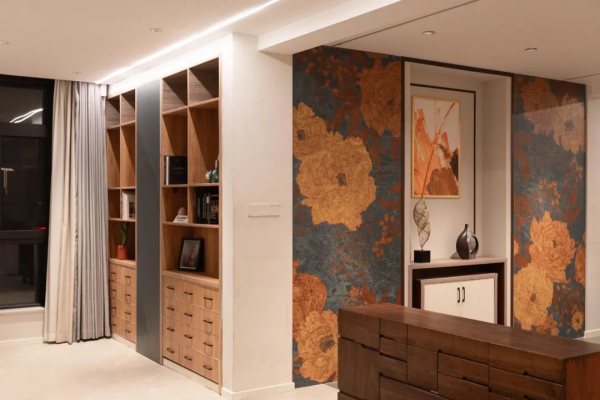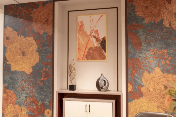 張新成:背景墻。這個是我比較驚喜的一點,因為這款產品的設計感很強,而且顏色也是比較鮮艷的那種,一開始是比較擔心會和整個風格比較不搭的,但出人意料的是,色彩碰撞下空間的美學,讓整體搭配更有張力,一進來就被吸引住了,還拍了不少照片,出片效果還不錯哈哈