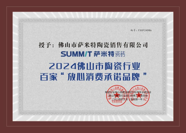 薩米特秉持“堅(jiān)守品質(zhì) 較真每一方寸”的宗旨,以科技為動(dòng)力,以質(zhì)量求生存,以嚴(yán)于國際標(biāo)準(zhǔn)作為薩米特的產(chǎn)品標(biāo)準(zhǔn),確保產(chǎn)品質(zhì)量穩(wěn)定提升,給消費(fèi)者最真切的品質(zhì)保障。薩米特瓷磚憑借產(chǎn)品品質(zhì)硬實(shí)力和專業(yè)服務(wù)軟實(shí)力再獲認(rèn)可,成為“放心消費(fèi)承諾品牌”品牌之一。