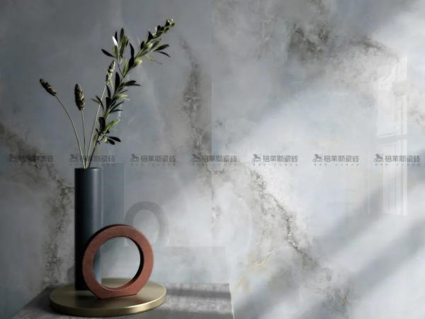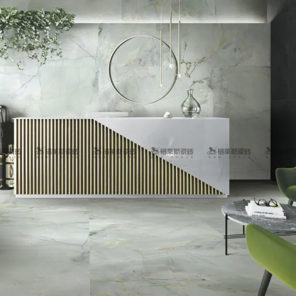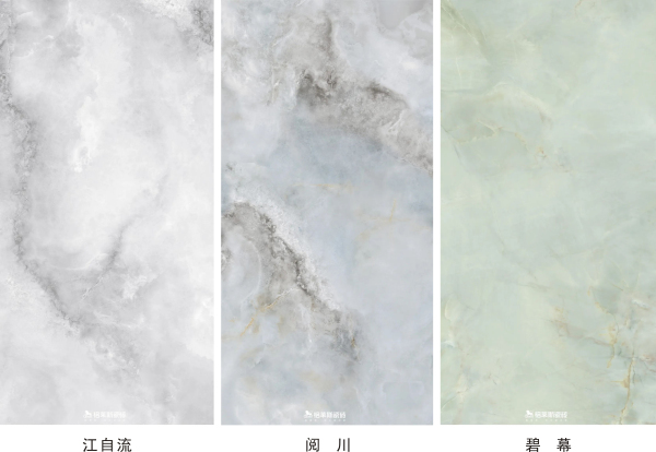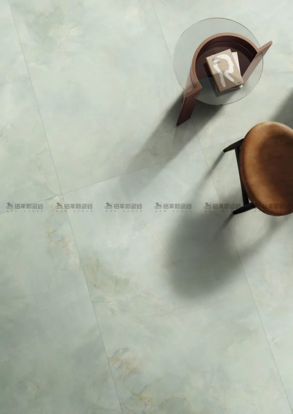 淺淺的薄霧似要被清風吹散,清透的玉石紋理大面積鋪貼有如巨大的碧幕,高清疊印下紋理細節清晰層次豐富,引人駐足,為生活添了一抹自然的生機。
