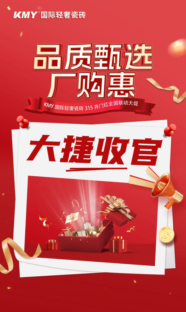 3月20日,卡米亞KMY國際輕奢瓷磚【 315品質(zhì)甄選廠購惠 】狂歡大促活動落下帷幕,全國終端門店戰(zhàn)力拉滿,超額銷售完成率勁爆收官,業(yè)績再創(chuàng)新高,超值底價x重磅福利,為廣大業(yè)主掀起一場充滿驚喜的“鉅惠風(fēng)暴”!