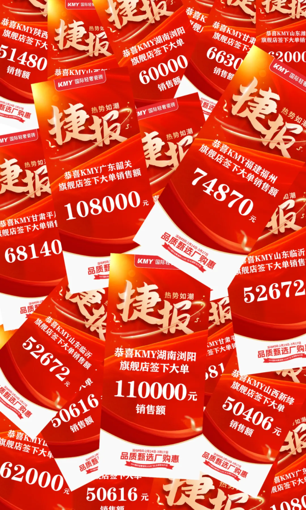 品質(zhì)瓷磚深受認(rèn)可,輕奢品牌備受喜愛,活動期間,在卡米亞KMY總部營銷幫扶下,各門店捷報頻傳,實現(xiàn)銷量業(yè)績雙突破,打贏漂亮開年第一仗。