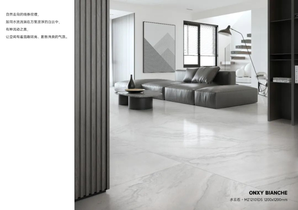 采用慕瓷核心技術(shù)深浮雕和模具疊加工藝,引入意大利進口真石釉,實現(xiàn)真石紋理從坯底生長到磚面的自然視覺效果,紋理流動交織,色彩自然豐富。