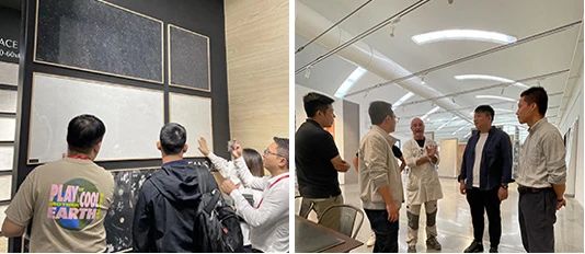 為了順應陶瓷潮流趨勢,尋求更好的瓷磚設計素材,箭牌瓷磚產品研發團隊親臨意大利展會、知名設計公司和釉料公司考察,學習世界頂尖瓷磚生產工藝和美學設計。