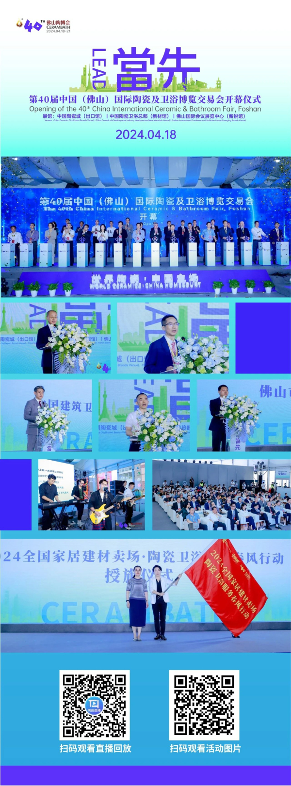 向新而行,當先而上!第40屆佛山陶博會隆重開幕!未來,佛山陶博會將持續(xù)創(chuàng)新,鞏固和擴大佛山陶博會“世界陶瓷 中國主場”的地位與價值,促進中國陶瓷由產(chǎn)品出海向品牌出海跨越,推動陶瓷產(chǎn)業(yè)高質(zhì)量發(fā)展。
