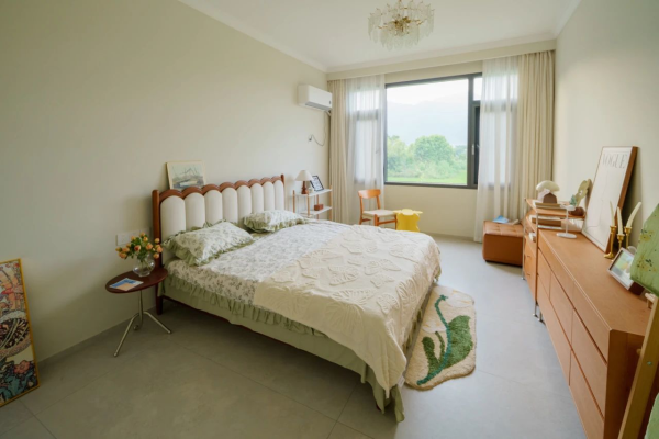 巴里·漫石-克萊米白以其淡雅的中性色調,也讓起居室的日常更具松弛感,窗外無垠的田野與二樓潔白無瑕的世界遙相呼應,演繹著關于寧靜、關于希望、關于生活之美的童話詩篇。
