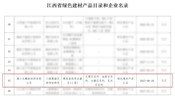 △ 東鵬新材入選江西省綠色建材產品目錄和企業名錄