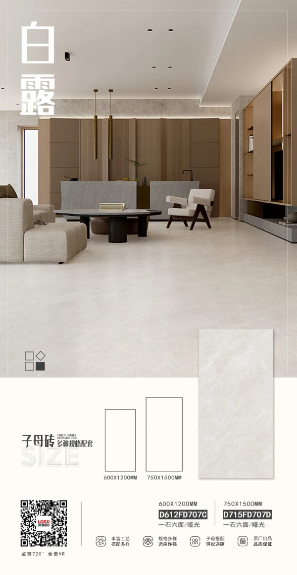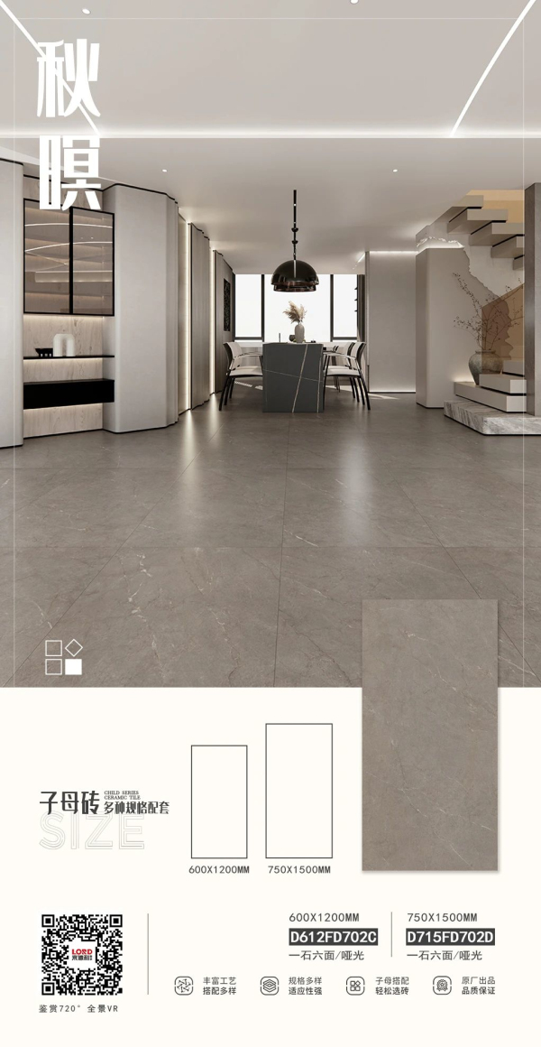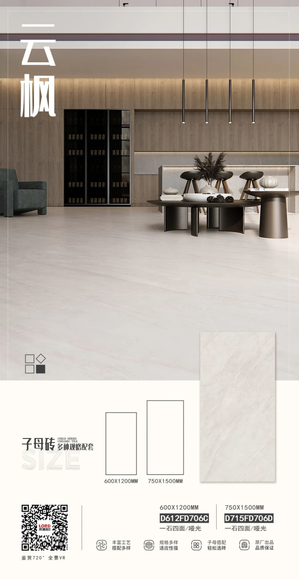 將精湛的「復刻釉」工藝融入功能之美,演繹出更符合高端空間需求的表面肌理、光感、觸感。在尺寸上,推出750x1500規格搭配600x1200規格的子母配套,讓質感可以存在于家的每一個大大小小的空間里。
