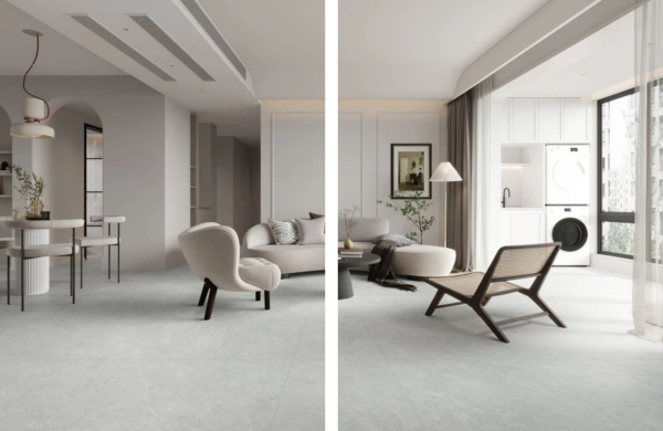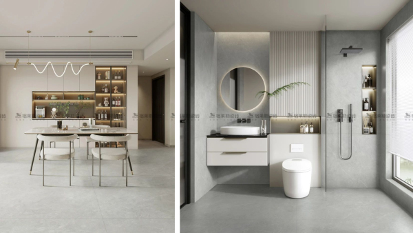600x1200mm規格冰花白以絕美質感營造奶油系浪漫,通鋪客餐廳、廚房衛浴各個空間,舒適美學輕松打造。