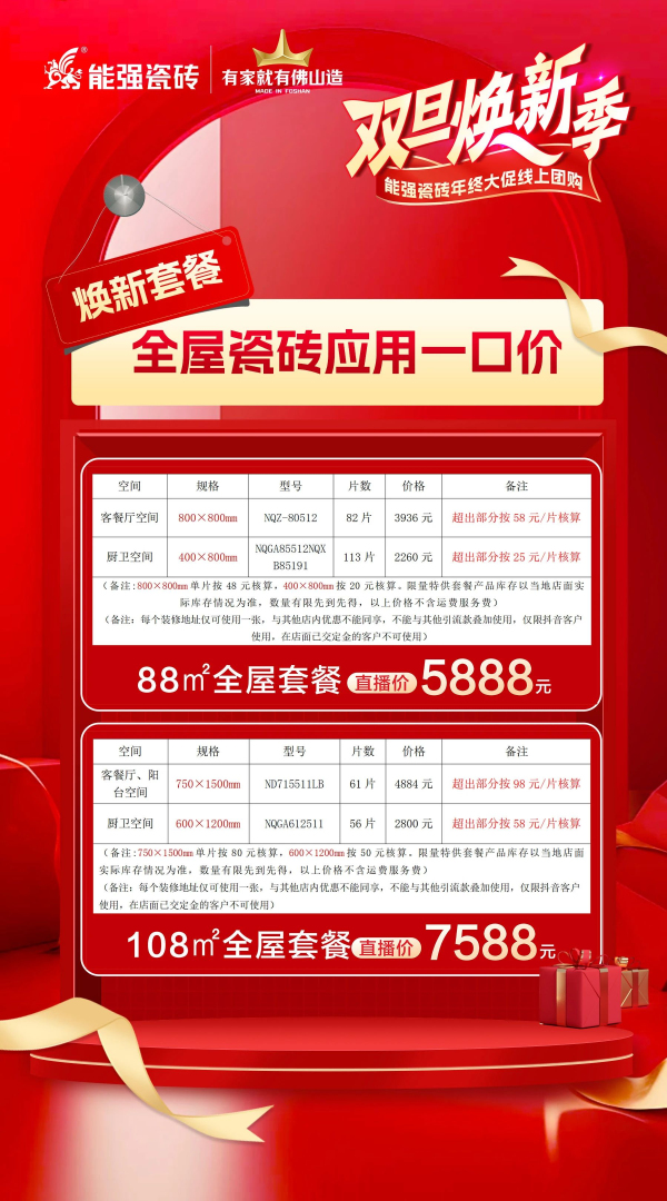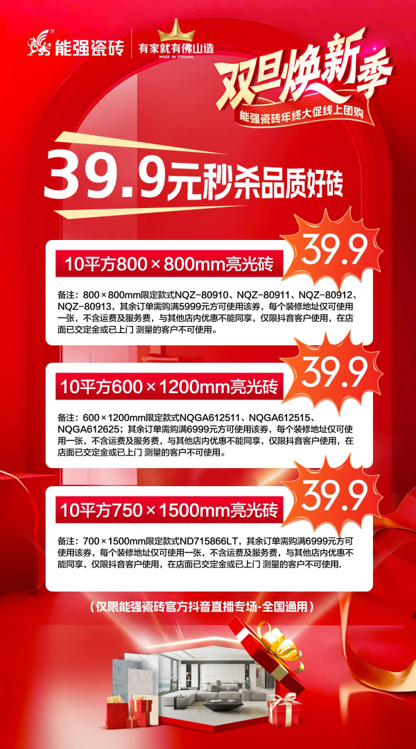 (注:僅限能強(qiáng)瓷磚官方抖音直播專場-使用范圍僅限廣東廣西海南三省)
