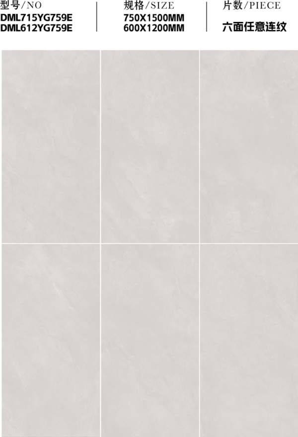 創新推出 750×1500mm&600×1200mm 黃金子母規格,大磚鋪陳客廳盡顯大氣層高延展,小磚適配廚衛臥室精準裁切,任意連紋設計可實現紋理無縫銜接,全屋通鋪一體化,提升設計整體性。
