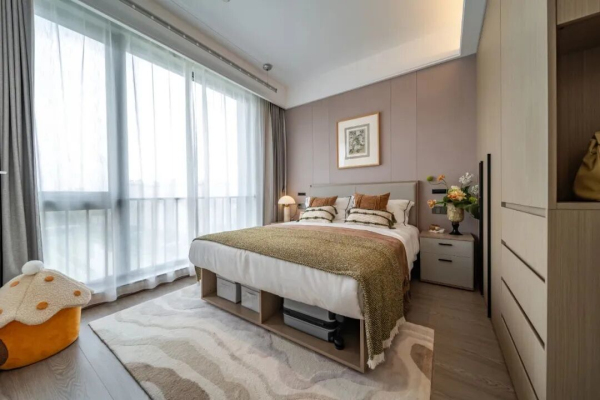 建筑與戶型的“美學+普適”定制。建筑設計上,項目摒棄了傳統公寓的單調立面,以“峰巒起伏”為靈感,用現代線條勾勒出富有自然肌理的建筑外觀;同時通過“向內造園、向外借景”的手法,將綠植景觀融入社區,塑造出“公園里的生活”場景。在此基礎上,項目根據租客的日常活動軌跡設置復合多功能場地,搭建起“隅+景觀體系”——無論是散步、休憩還是社交,都能在景觀中找到適配空間,讓居住美學從“視覺欣賞”落地為“體驗感知”。