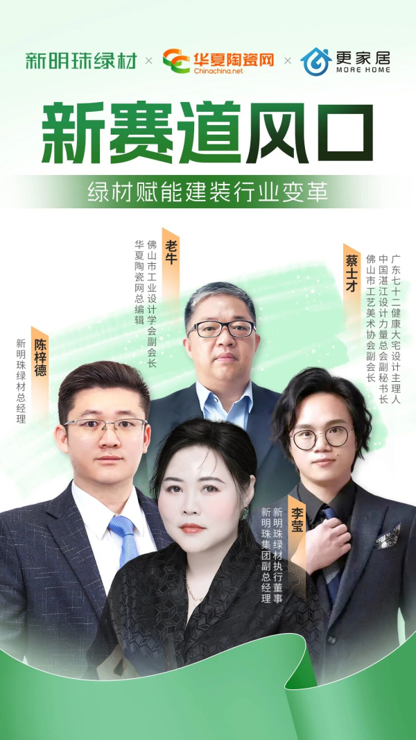 新明珠集團副總經理、新明珠綠材執行董事李瑩,新明珠綠材總經理陳梓德做客華夏陶瓷網直播訪談,共議“新賽道風口,綠材賦能建材行業變革”。系統闡述了新明珠綠材以科技創新為支撐,為行業提供綠色轉型的系統解決方案,通過聯動具有綠色使命感的產業力量,守護地球生態,重塑行業價值標桿。