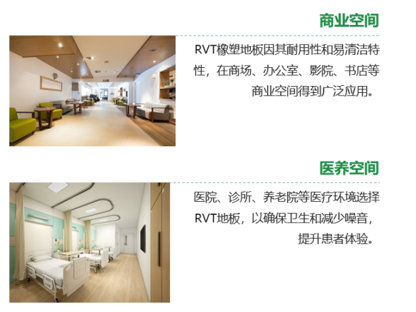 產(chǎn)品具備耐磨耐刮、柔韌性強(qiáng)、隔音降噪、防水防潮、防火阻燃等優(yōu)異性能。表面經(jīng)特殊處理,具有防腐防霉、防滑減震、抗污易清潔等功能,廣泛適用于教育、商業(yè)、公共空間以及醫(yī)院、養(yǎng)老院等多種空間場景。
