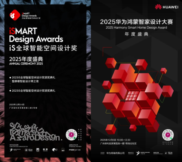 從設計空間到設計空間里的行為,從設計美到設計美好生活,設計+智能,AI人工智能時代的設計必修課,在2025廣州設計周都能見識到和體驗到,相關活動包括:2025 iS全球智能空間設計獎年度盛典、2025華為鴻蒙智家設計大賽年度盛典、開發者大會2025年度大會暨年度頒獎典禮……等。