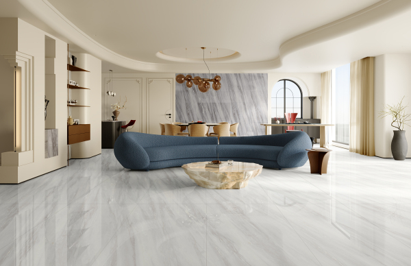 「宋境·玉」運(yùn)用45°柔拋工藝,讓磚面更加接近天然石材的光感,柔光質(zhì)感更加高級(jí),用在客餐廳、臥室光感非常舒適;疊加了冰晶干粒,光感細(xì)節(jié)更加豐富精致。