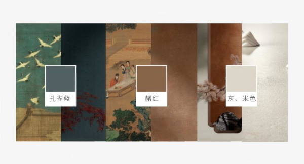 色彩密碼:系列特別提煉出內(nèi)斂溫和中性色為主色調(diào),以極具宋代特色的孔雀藍(lán)、赭紅色作為配色,點(diǎn)綴于中性色之間,為現(xiàn)代空間注入一抹沉靜而不失格調(diào)的詩(shī)意。