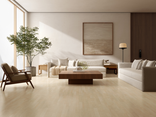 「宋境·石」運(yùn)用了兩種工藝設(shè)計(jì),一種是肌膚釉面設(shè)計(jì),采用了箭牌瓷磚第四代膚感釉,打造觸感親膚、光感柔潤(rùn)的磚面肌理,鋪貼在地面非常舒服。