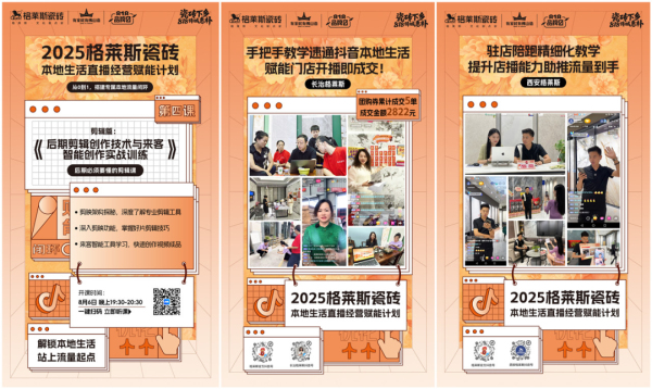 品牌總部以身作則,總經(jīng)理黎汝讓“黎叔講瓷磚”賬號(hào)開通,以90條視頻近百萬曝光吸引終端經(jīng)銷商老板以及導(dǎo)購(gòu)紛紛效仿建立新媒體矩陣,超100家格萊斯終端門店入駐抖音本地生活。今年“818品牌日”期間,格萊斯全新“下沉市場(chǎng)+新媒體賦能”模式實(shí)戰(zhàn)落地,實(shí)現(xiàn)了單個(gè)門店留資加微信率62%的標(biāo)桿記錄。