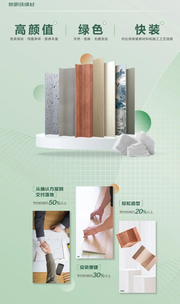 這一合作典范充分證明,新明珠綠材的解決方案不僅能滿足傳統建筑裝飾需求,更能與前沿科技無縫對接,為各類空間賦予“綠色+智能”的雙重價值。