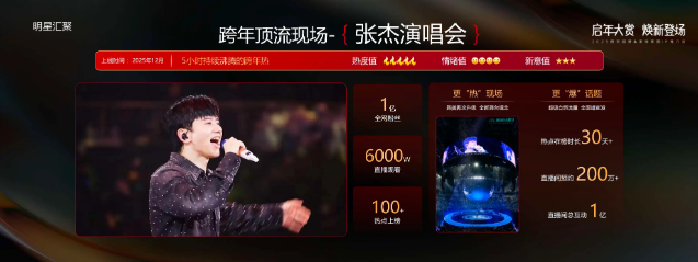 「張杰跨年演唱會」已經是連續第三年跟抖音合作了,2026年舞臺將全面升級,作為內娛頂流實力唱將,張杰覆蓋全網1億粉絲關注,2025年跨年演唱會相關熱點持續在榜長達30多天,表現出強大的長尾效應。此外,元旦假期期間,抖音還有「潘瑋柏巡回演唱會抖音特別場」「林憶蓮新年回響演唱會」等多種資源,適合品牌根據目標受眾進行深度圈層滲透。