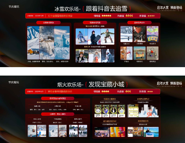 基于春節出游熱點,抖音生活服務打造了「跟著抖音去追雪」「發現寶藏小城」等IP項目,前者與全國雪場以及哈爾濱冰雪大世界深度聯動,展開線上內容和線下文旅全方位合作,為用戶提供歡樂冰雪體驗;后者則深入有特色的小城,譬如溫泉小城、洗浴小城以及冰雪小城,帶領用戶走街串巷去尋找一些不踩雷的快樂。