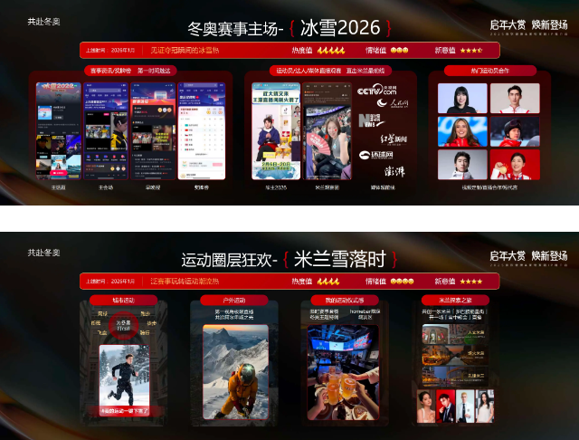 最后,馬年春節還有一個大彩蛋,就是春節期間也恰逢米蘭冬奧會舉行,頂級體育賽事的話題熱度、情緒濃度將與春節疊加,雙頂流相遇將帶來更具爆發力的情緒場景。