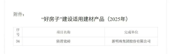 日前,住房和城鄉建設部科技與產業化發展中心正式發布《“好房子”建設適用建材產品(2025年)》名錄,冠珠瓷磚產品成功入選。作為高品質建材的代表,冠珠瓷磚“好材料”不僅為居住安全性和品質提供了可信賴的解決方案,更持續助力行業標準體系的升級。