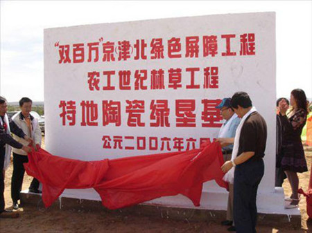 2006年時,特地陶瓷加入“雙百萬工程”,并在當年首期出資購買了15000株樹苗,投入四王子旗的防風固沙與綠化,這也就是后來名聲極大的“特地綠墾基地”。