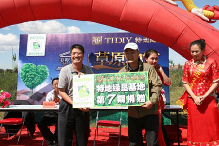 2007年4月,特地陶瓷組織百人團隊前往四王子旗,第二次捐贈樹苗15000棵;2008年,特地陶瓷舉辦“為北京喝彩,為奧運添綠”活動,相約全國設計師精英30多人再一次遠赴內蒙古進行綠墾基地。