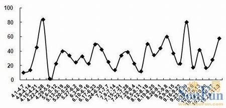 2013年成都主城區(qū)周商品房新增預(yù)售面積走勢(萬平方米)